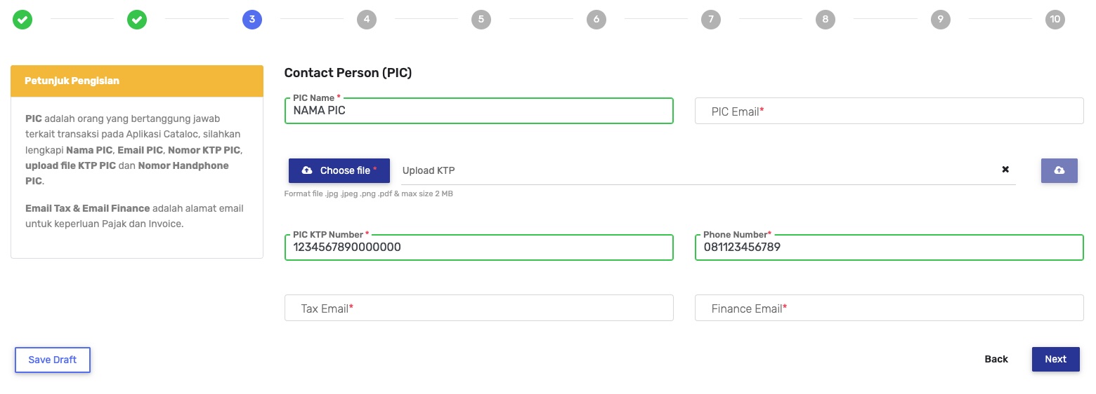 10. Isi Nama Kontak dan upload KTP serta nomor telepon dan email-email yang dibutuhkan